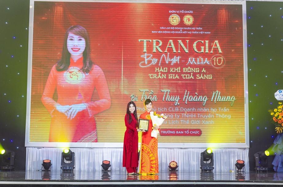 Bà Trần Thụy Hoàng Nhung – Giám đốc Công ty Truyền thông và Du lịch Thế Giới Xanh, Phó Chủ tịch Câu lạc bộ Doanh nhân họ Trần, Trưởng Ban Tổ chức chương trình Trần Gia By Night – Mùa 10